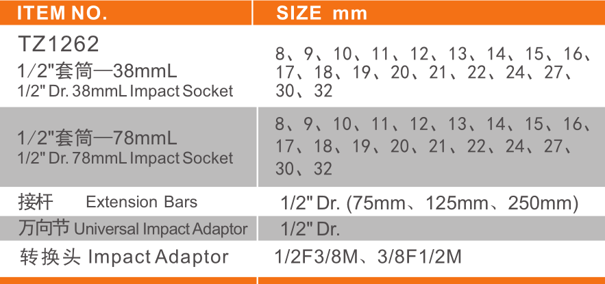 六 角 加 长 套 简 6-Point Deep Impact Sockets