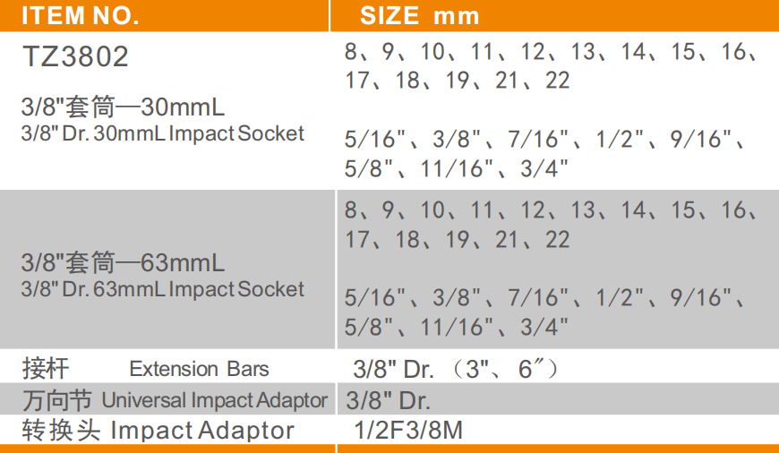 六 角 加 长 套 简 6-Point Deep Impact Sockets