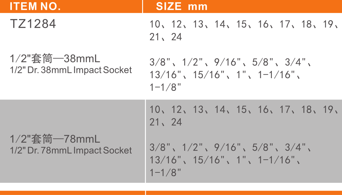 六 角 标 准 套 简 6-Point STD Impact Sockets