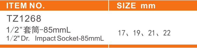 六 角 标 准 套 简 6-Point STD Impact Sockets