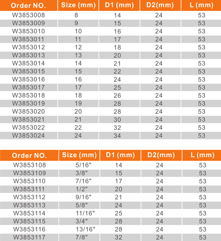 六 角 加 长 套 简 6-Point Deep Impact Sockets